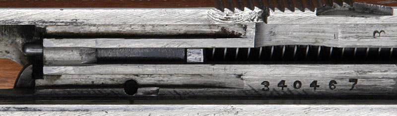 An example of a Colt factory serial number overstrike to correct in an incorrectly numbered gun.  Note the "6" over the "5" above.