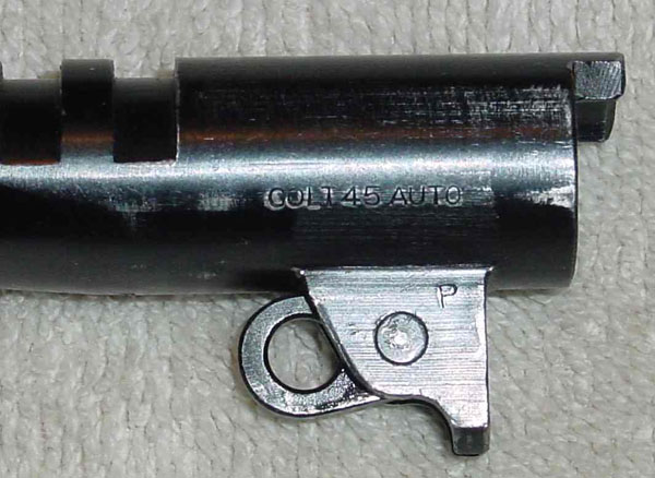 Blued barrel - Left side of barrel marked "COLT 45 AUTO" and "P" on lug.