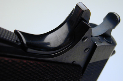 Rear grip safety showing blued finish. |