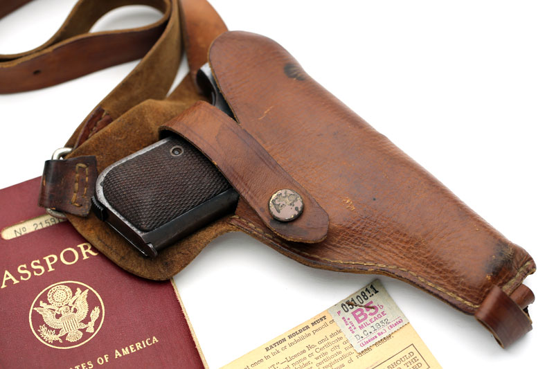 Colt 1903 Pocket Hammerless .32 ACP sn 560290 - issued by the OSS to Army Major Eric Lindgren Bark in Sweden during WWII. Included with this Colt is Major Lindgren Bark's passport and unmarked shoulder holster. Pistol was one of 508 sold to the United States Government and shipped on August 24, 1944 to the Property Officer, Supply Division, Office of Strategic Services, Fowler Building, Rosslyn, Virginia and processed on Colt Factory Order 4420.